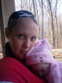 The weather here in Indiana has been gorgeous this week, and I mean with a capitol G - GORGEOUS. Today it was almost 60 degrees, but Wednesday it was about 65 so we headed out for a walk. Carter was so excited to get outside - he has always loved walks in his stroller. I loaded Ell up in the baby snuggley and we were off. Funny...I was carrying around about 50 extra pounds, so I got quite a work-out.
